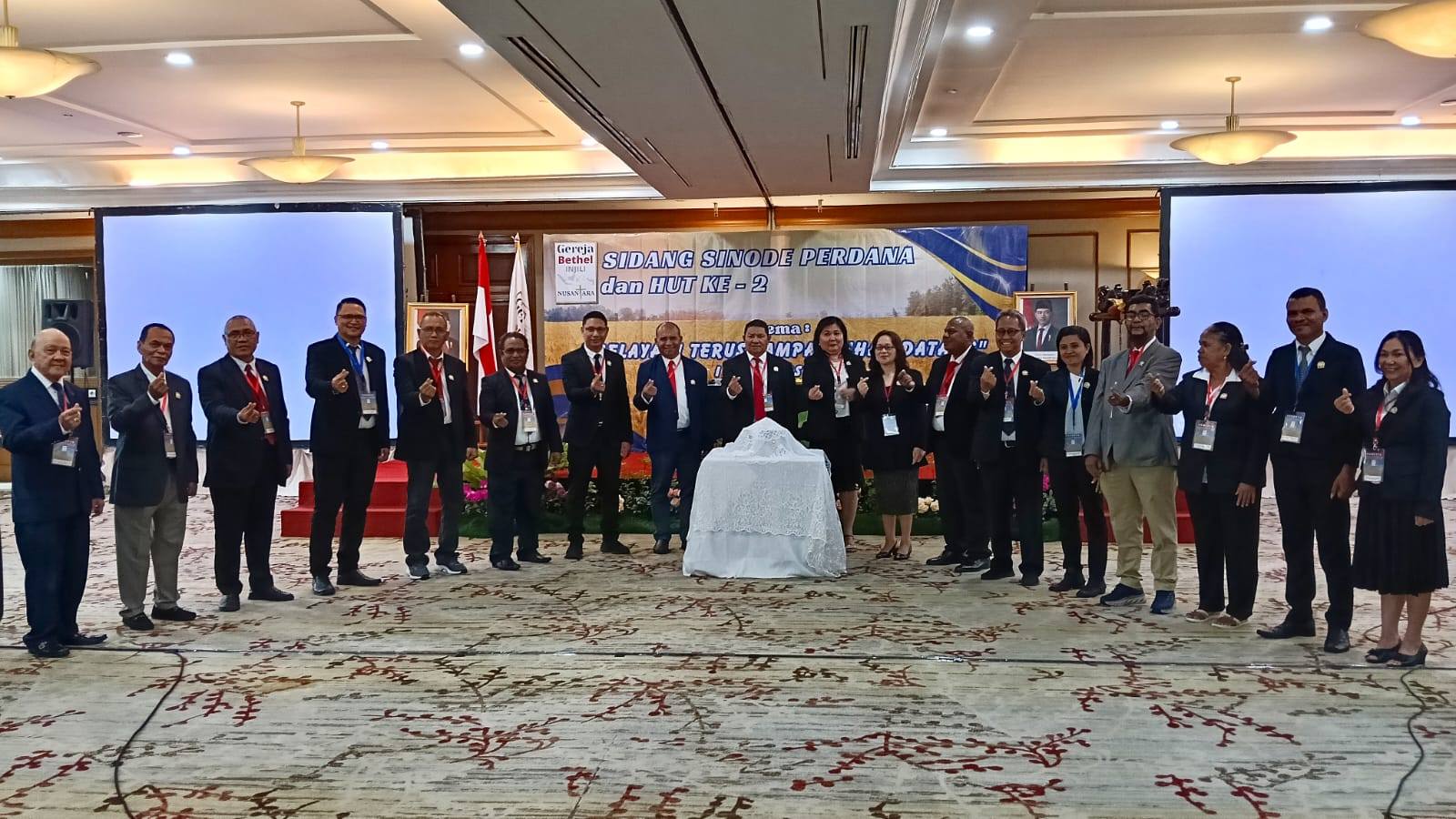Jakarta - Sinode Gereja Bethel Injili Nusantara (GBIN) menggelar Sidang Sinode Perdana dengan mengusung tema “Melayani Terus Sampai Tuhan Datang” dan hari jadinya yang ke-2, di Menara Peninsula Hotel, Jakarta Barat, Selasa-Kamis, 17-19 Juni 2025. Semangat tema yang diambil nats 1 Korintus 15:58 itu diwujud nyatakan dengan kehadiran para hamba Tuhan dari berbagai daerah di seluruh penjuru Nusantara. Walaupun gereja sinode ini baru berusia dua tahun, telah menjangkau 15 provinsi di Indonesia. Hal ini menjadi bukti bahwa pelayanan yang dilakukan dengan iman dan kesetiaan, sekecil apapun, dapat membawa dampak besar. “Pelayanan Itu Bukan Sekedar Aktivitas Rohani, Tetapi Mandat Surgawi” kata Ketua Sinode GBIN, Pdt, Dr, Melianus H. Kakiay, M.Th, Dalam khotbahnya, Pdt. Ferry, begitu biasa Pdt, Kakiay akrab dipanggil, mengajak seluruh umat percaya untuk tidak lelah melayani Tuhan. “Jika kita melayani Tuhan, jerih payah kita tidak akan sia-sia. Mujizat Tuhan terjadi ketika umat-Nya berkumpul. Jangan tinggalkan gereja mula-mula, sebab dari sanalah kuasa Tuhan dinyatakan!” ujarnya.